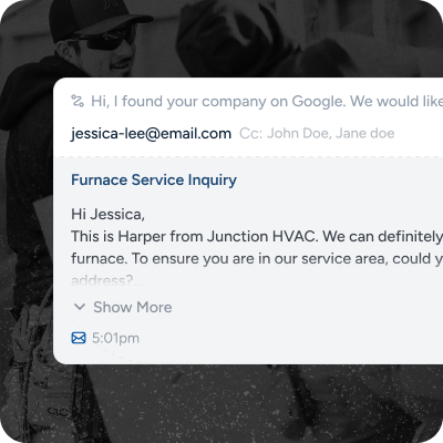 No. Harper is mostly used for after-hours support and overflow — when you’re on a roof, driving between jobs, or just can’t get to the phone. It makes sure you never miss a call or a job. It’s not replacing anyone. It’s catching the calls that would otherwise go to your competition.